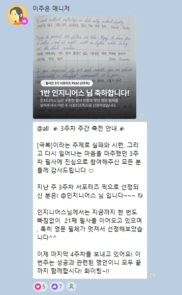 필사 단톡방 I 2024년부터 시작 I 3기 운영중 (연 6회)